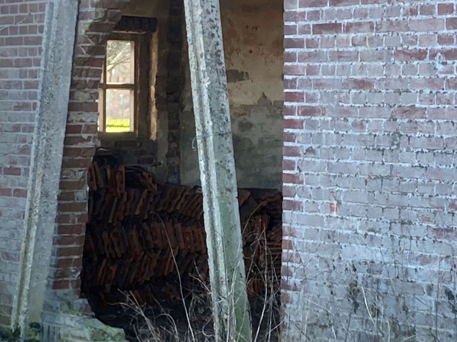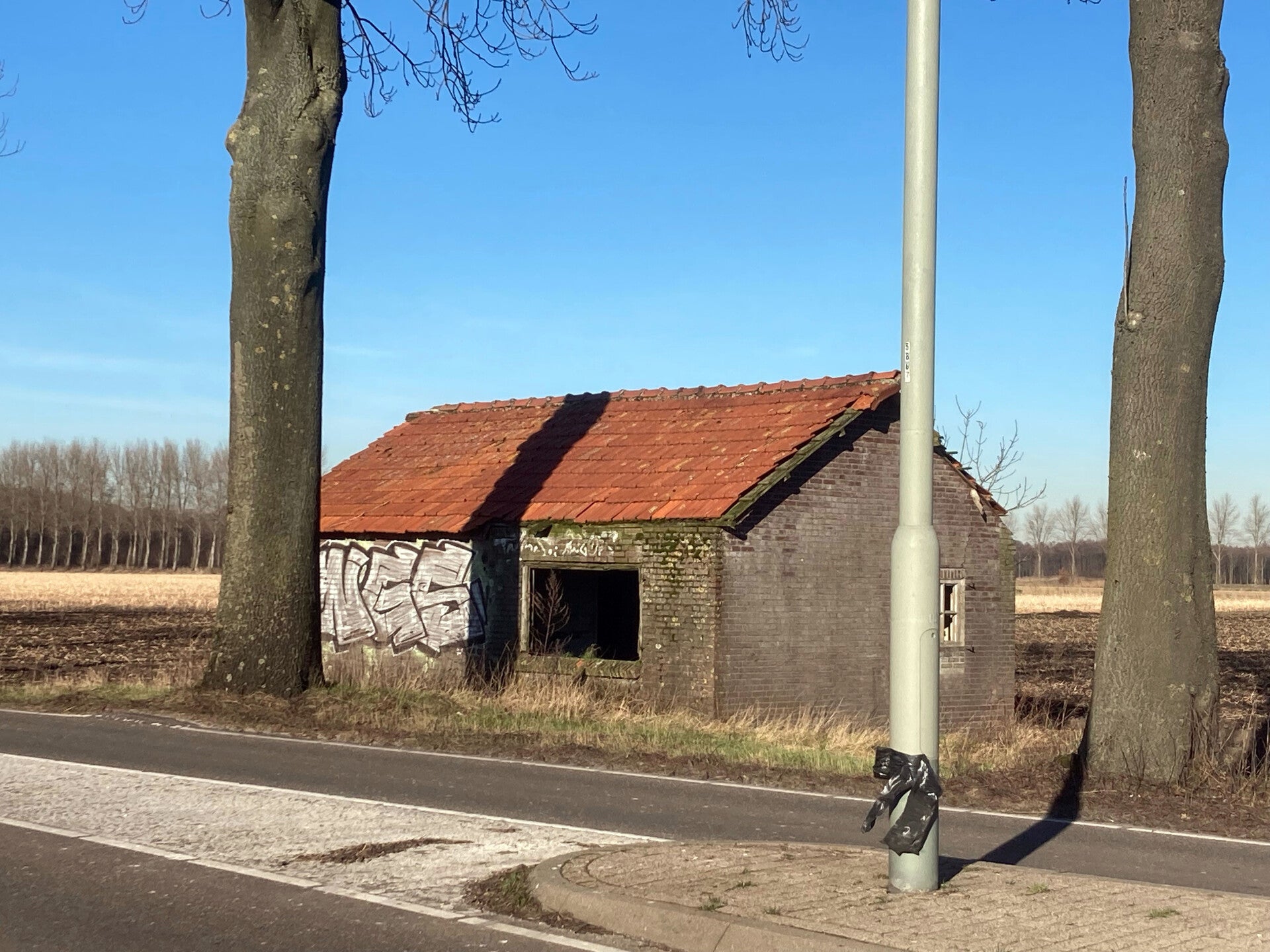 Foto-impressie van de huidige staat (8 febr. 2023). Verval willen we tegengaan, wehrmachthuisje zoveel als mogelijk herstellen en vandalisme voorkomen!.